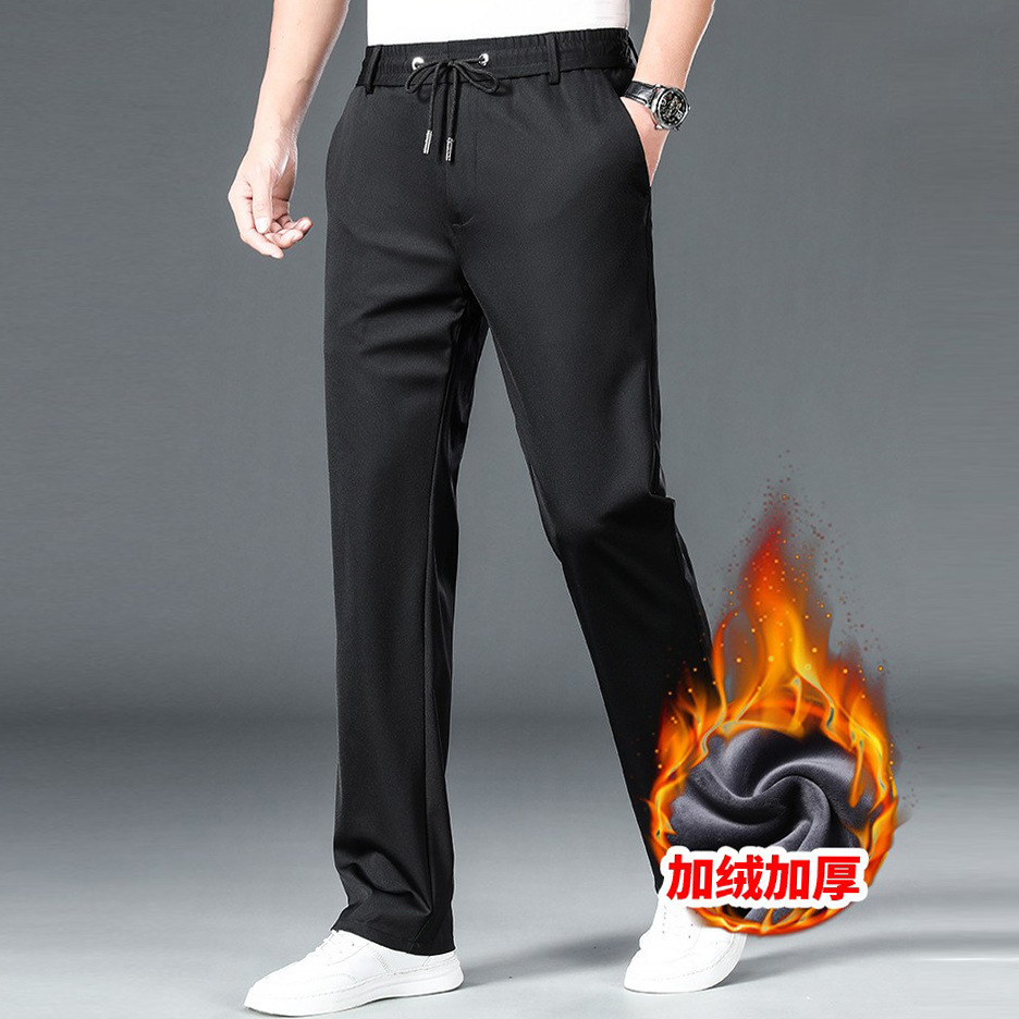 秋冬加毛カジュアルパンツ男厚タイプストレートパンツ弾力男ズボンビジネス中青年四面弾ニット長ズボン