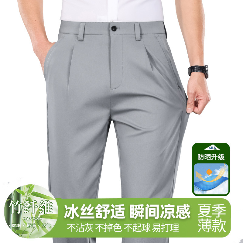 カジュアルなズボンの男性のストレートな筒の夏の軽薄な中で青年のさわやかな弾力の男性のズボンの軽い豪華な竹の繊維のビジネスの垂れ下がっている感じのズボン