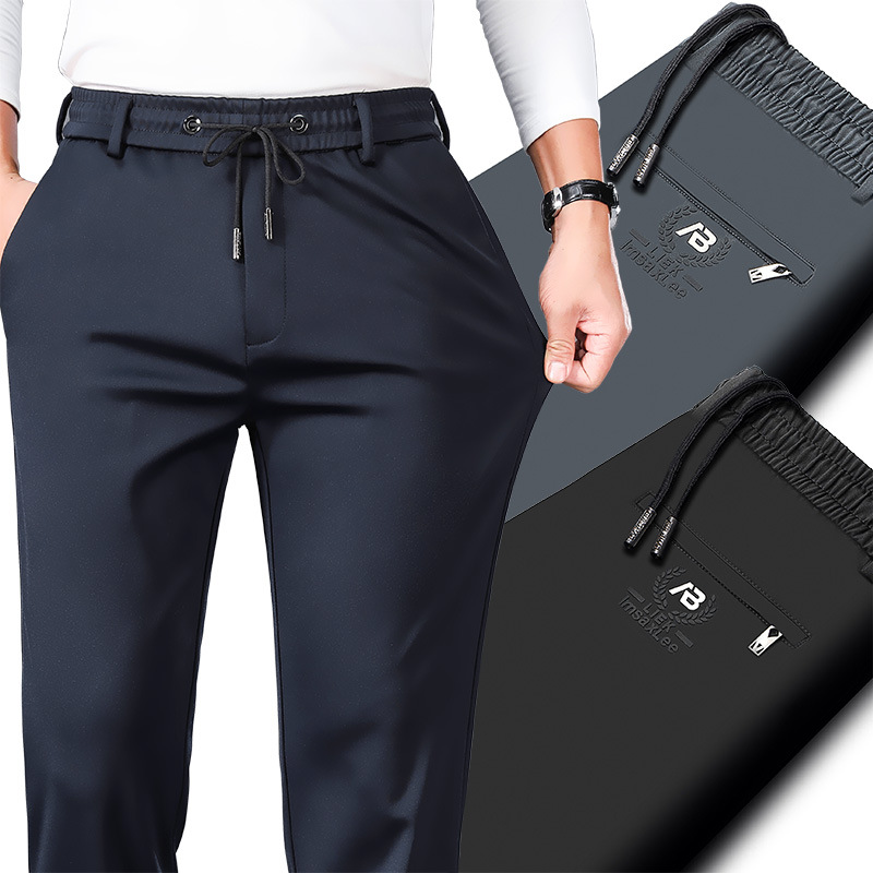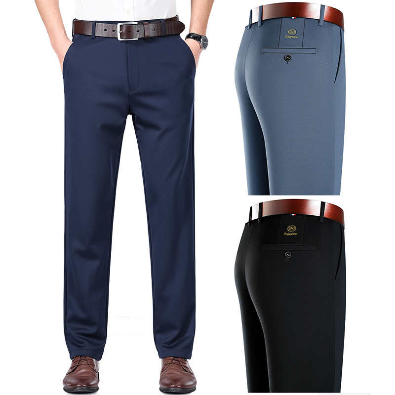 カジュアルなズボンの男性の夏の薄い弾力性の男性のズボンの中で青年のお父さんのズボンのビジネスのズボンはまっすぐな筒の男性の長いズボンに沿っています。