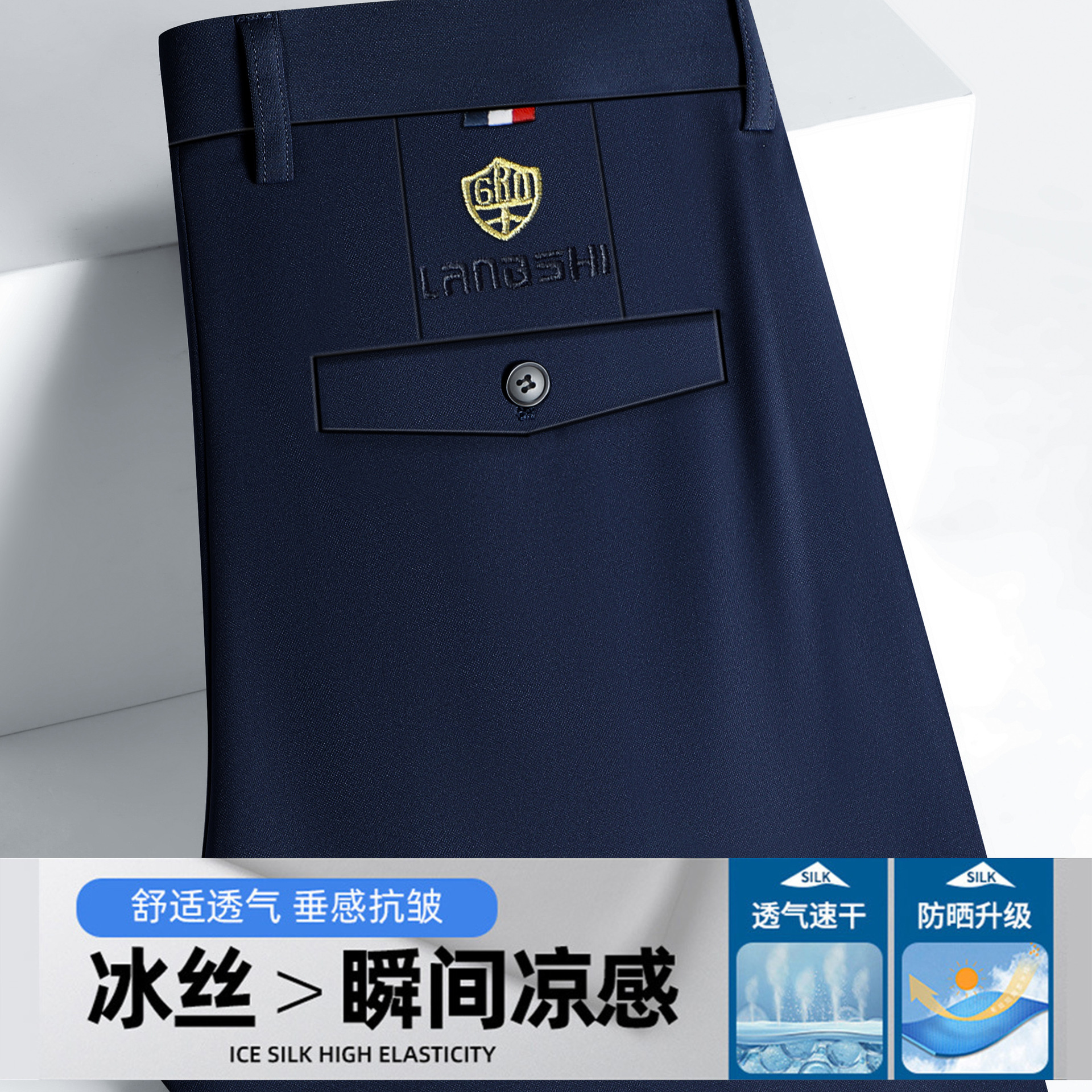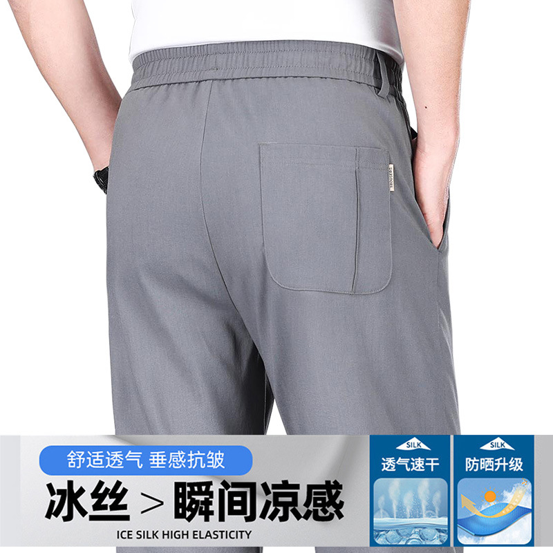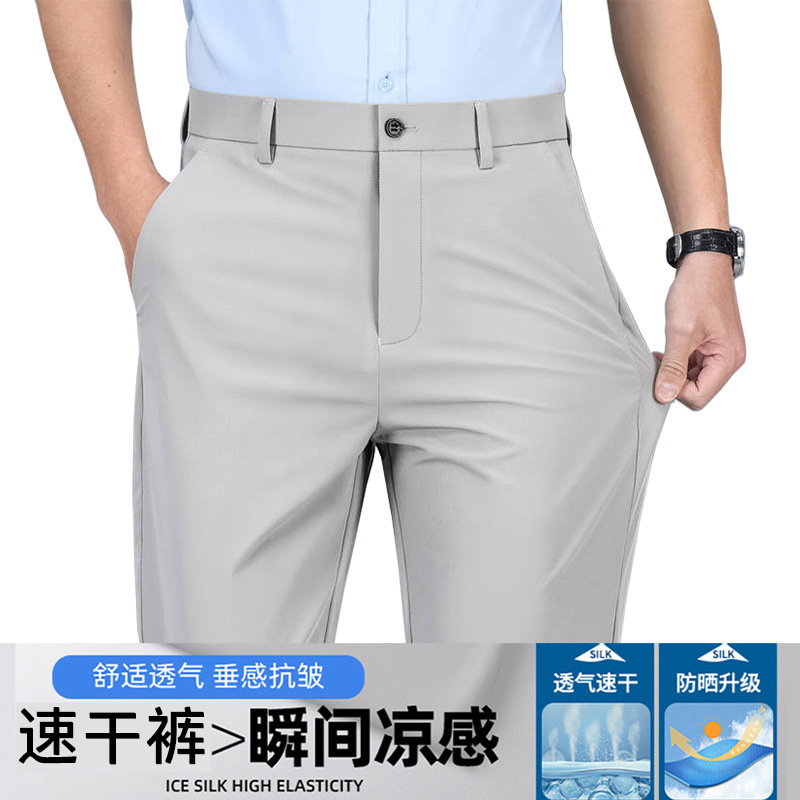 夏カジュアルパンツメンズストレート薄手ナイロン弾性ビジネスメンズパンツルーズライト高級速乾ロングパンツお父さんパンツ