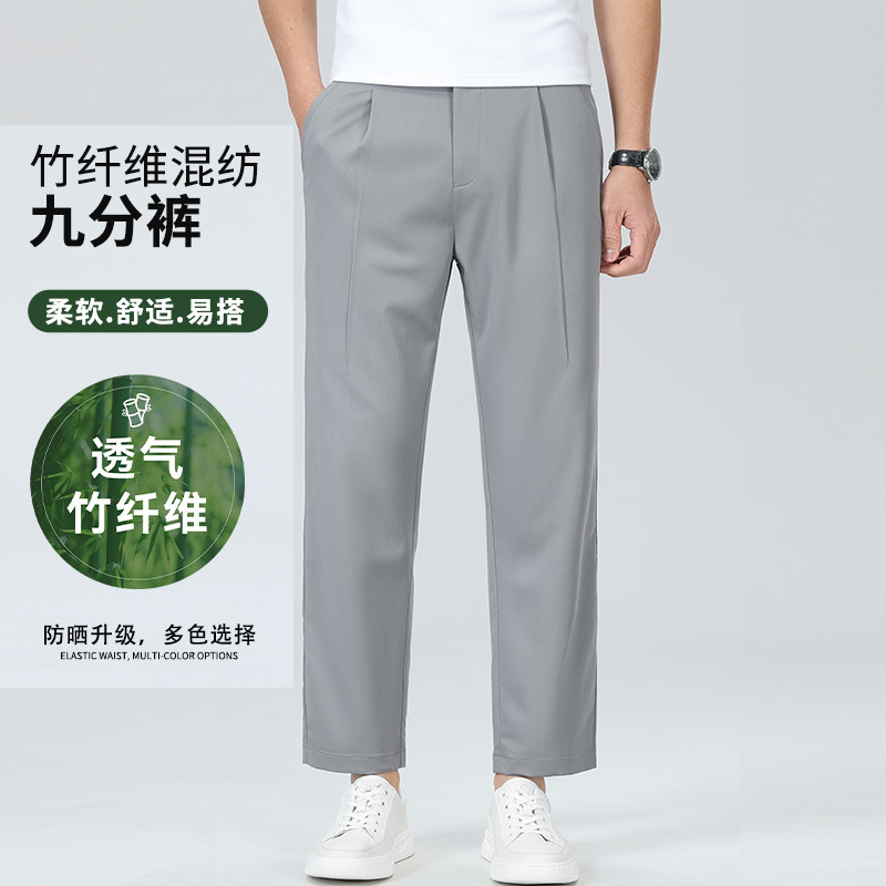 竹繊維カジュアルパンツ男性夏の薄いストレートバンドの通気性のあるビジネスパンツ9分ズボン男性ズボン