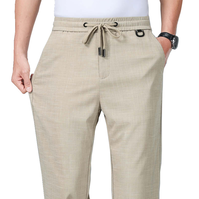 亜麻のカジュアルなズボンの男性の直筒の夏の薄い弾力の腰のスポーツのズボンの日焼け止めの通気性の氷の爽やかな男性のズボンの男性のズボン