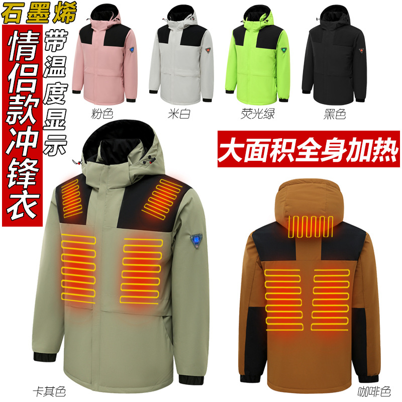 クロスボーダー7.4v綿服発熱突撃服カップル綿服防水防風ベルベット加熱保温コート作業服