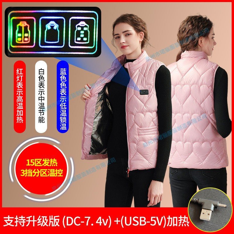 23ヨーロッパコード知能発熱馬甲双控恒温15区usb充電ダウン綿加熱馬挟みクロスボーダー専用供給