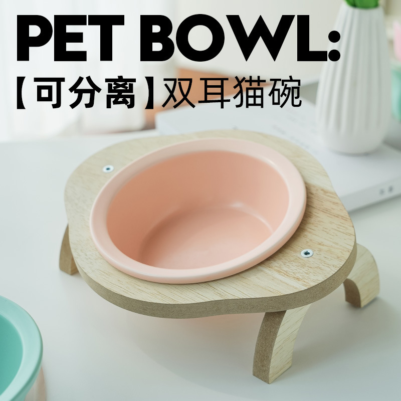 猫用セラミックボウル、背の高い木製スタンド、頚椎を保護する背の高い犬用フードボウル、転倒防止ペットボウル、セラミックボウル