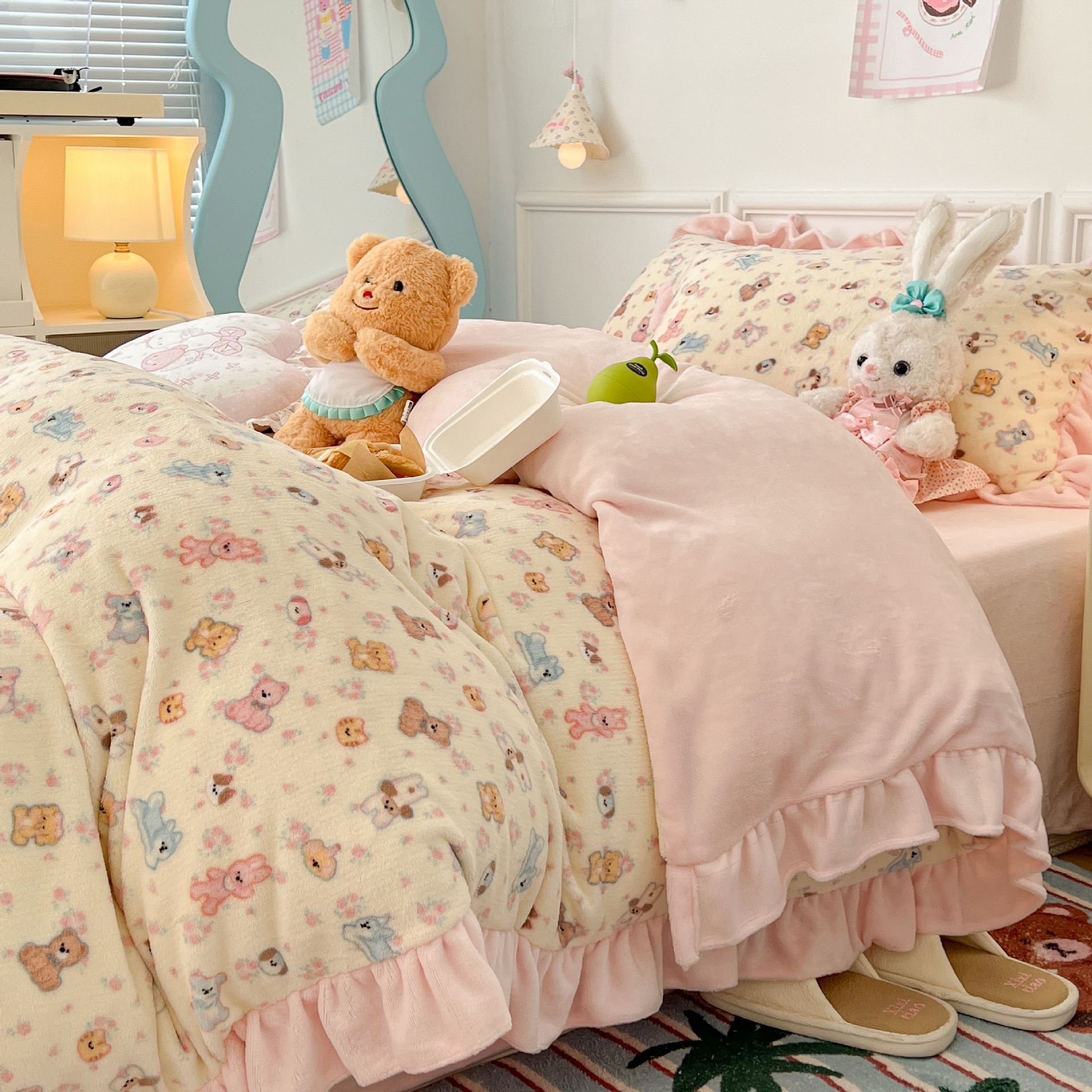 新しいウサギのぬいぐるみの4セットの牛乳のベルベットのシーツは、冬の厚いフランネルの布団カバーとベルベットの3セットをカバーしています