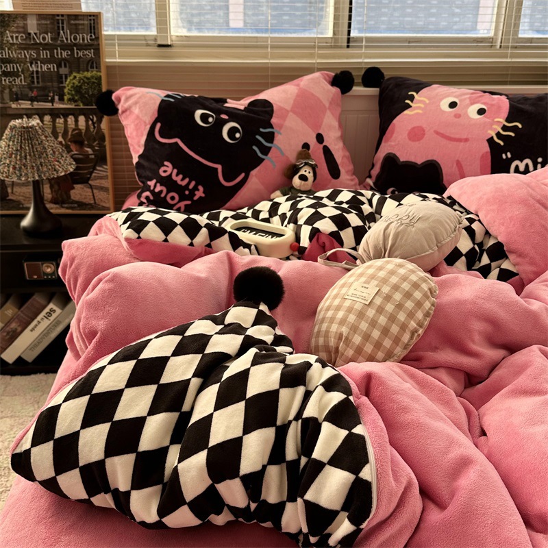 小清新厚手のミルクの毛の四つのセットの冬のサンゴのフランネルの布団カバーのシーツの三つのセットのベッドカバーのベッド用品