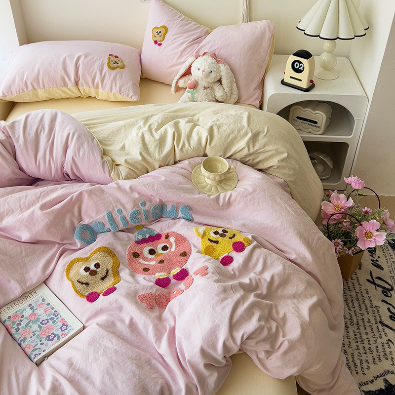 Ins小清新クリーム風超柔水洗い綿タオル刺繍四点セット学生寮三点セット布団シーツ