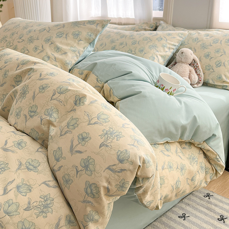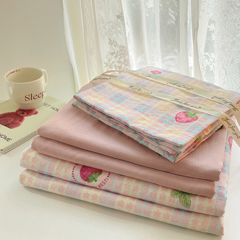 2025年新作 クラウドセンス シワ糸4点セット ウォッシュドコットンエッジ 4点セット シングル・ダブルベッドシーツ 掛け布団カバー 寮