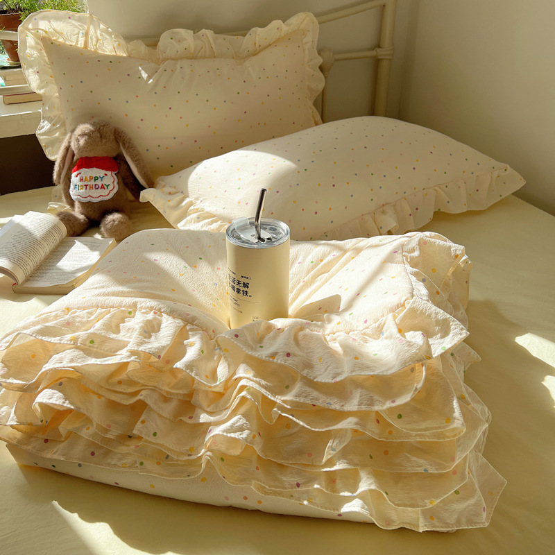 2025年新作 クラウドセンスニット二重糸4点セット プリンセス風 シングル・ダブル 寮用ベッドシーツ 掛け布団カバー 洗える