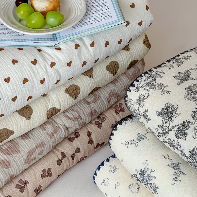 春夏新作 純綿二層クレープ三角針サマーキルト サマークールキルト 空調キルト 4点セット 綿100