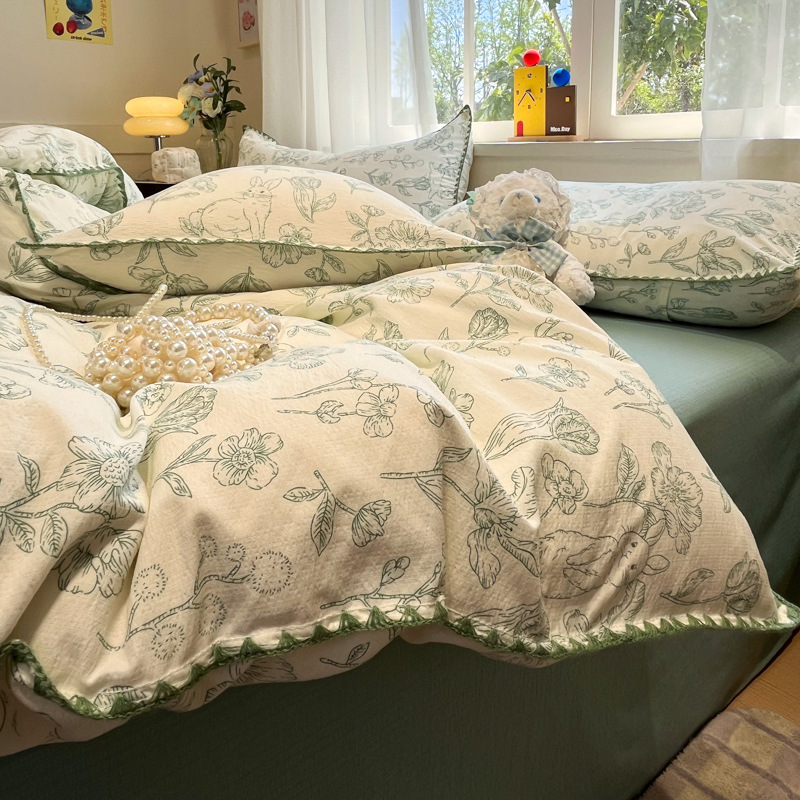 レース韓国森うさぎA級雲感糸シーツ4点セット小清新ダブルキルトカバー寮3点セット