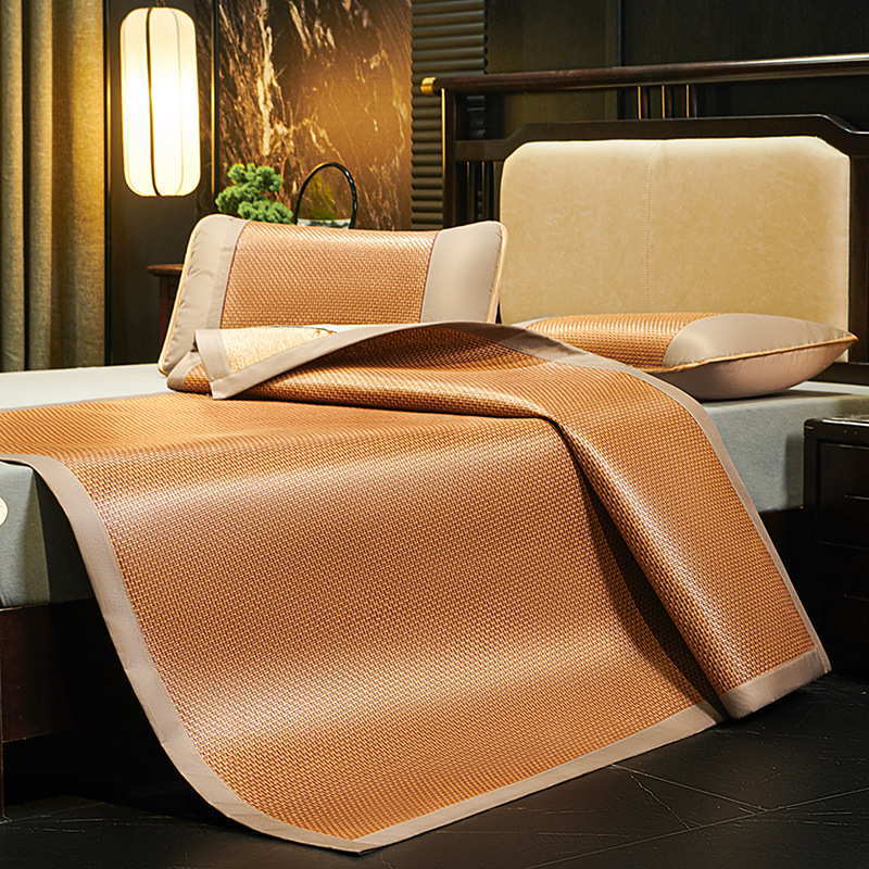 竹マット 夏刺繍アイスシルクマット 夏折りたたみ 春夏両用 両面マット 学生寮 シングル