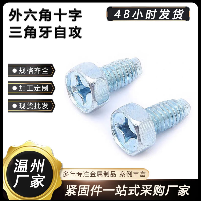 亜鉛メッキ外六角十字三角歯タッピングねじm3 4m 5m 6凹脳十字セルフロックねじキャビネットボルト