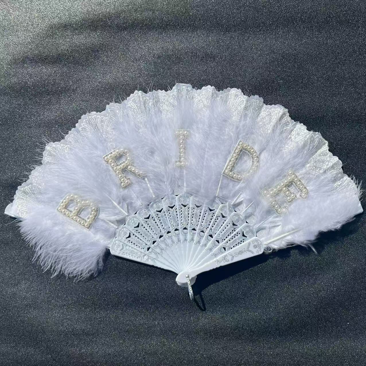 Amazon ブライダル パール 英字 花嫁 ホワイト フェザー 折りたたみ扇子 バチェラー パーティー 花嫁 ウェディング ギフト
