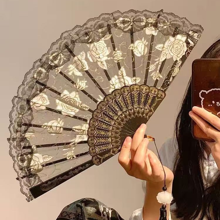 ヨーロッパのレトロなスペイン扇子、クラシックダンス写真扇子、ダークレース扇子、妖精扇子