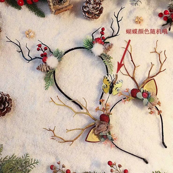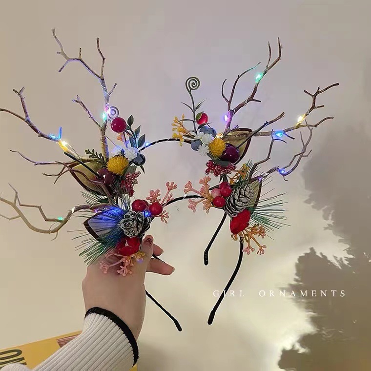 新商品の超仙の枝のカチューシャはクリスマスの頭飾りの鹿の角の花が光る枝のヘラジカの髪飾りです。