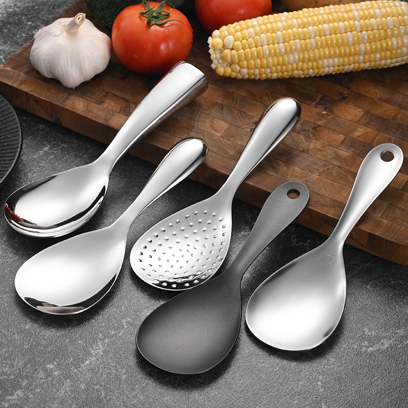 厚みのある中空柄の焦げ付き防止米飯スプーン、分割用スプーン、304ステンレス鋼、自立式飯スプーン、しゃもじ