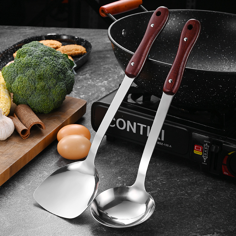 三センチ無磁木柄ステンレス鍋シャベルスプーンセット炒め料理シャベル調理道具家庭用スプーン粥スプーン