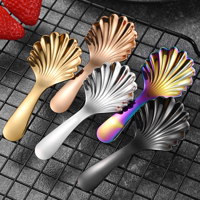 304ステンレスティースプーン茶シャベル金色貝殻型茶葉匙短柄小丸スプーン創意アイスクリームデザートスプーン