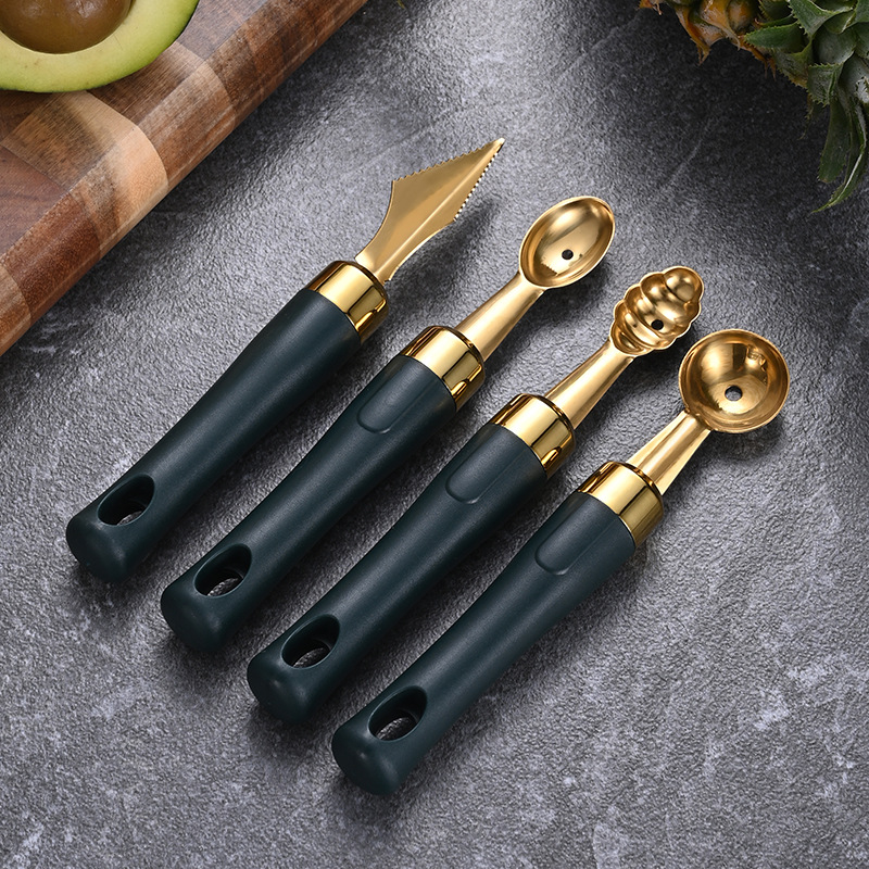 クリエイティブゴールデンファンシーフルーツボール掘り器スプリッター304ステンレスアイスクリームボール掘りスプーンスイカスプーン