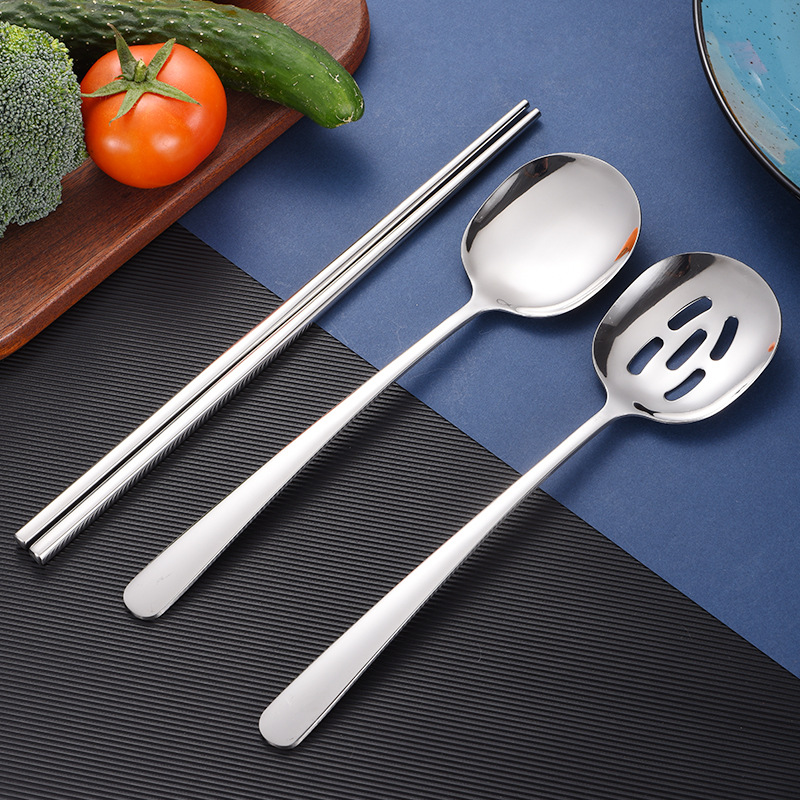 卸売り304ステンレス共通スプーン分菜漏れ共通箸ホテルレストラン延長共通分菜三点セット