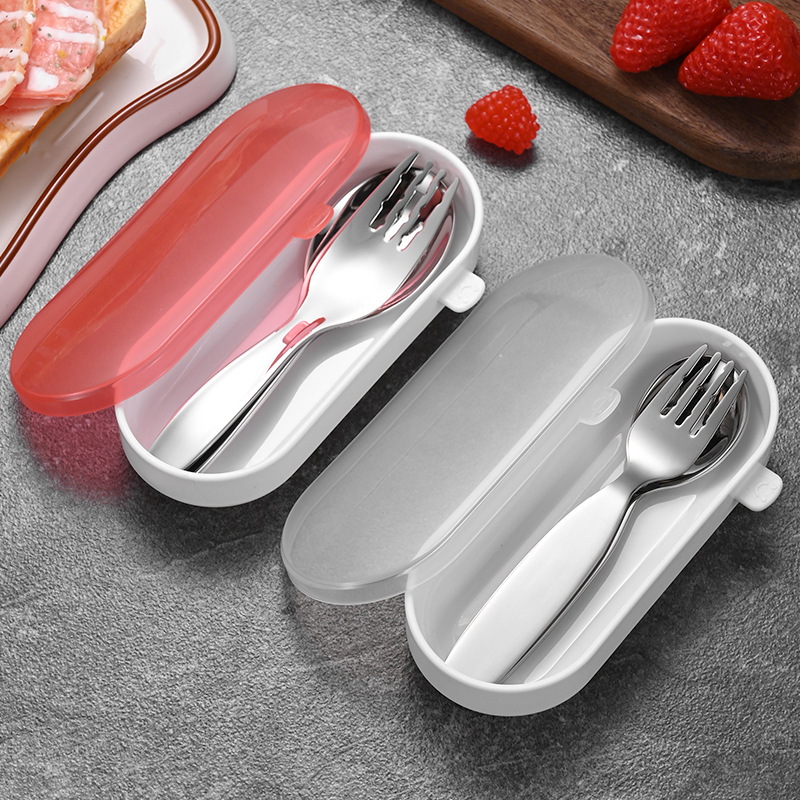316ステンレス子供フォークスプーン収纳ボックス304食器ポータブルセット旅行赤ちゃんお食事スプーンフォーク
