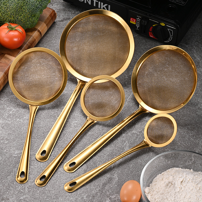 クロスボーダーメッキ金色バラ金ステンレス網漏匙密網家庭用豆乳濾過スプーン小麦粉篩家庭用