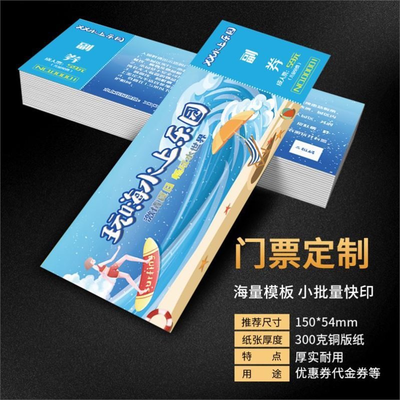 夏の水泳チケット水上楽園雪氷世界偽造防止パッケージ折り畳み感熱チケットは可変二次元コードを作る