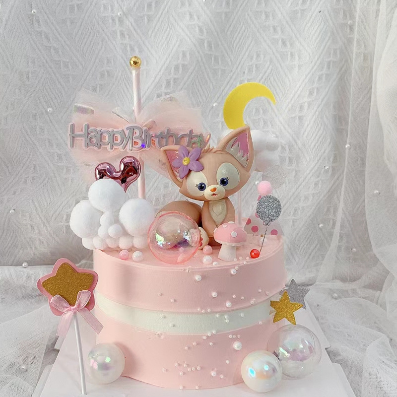 ピンクのリトルフォックスケーキデコレーションリナベル人形ドレスアップかわいいインターネットセレブプリンセスガール誕生日オーナメント