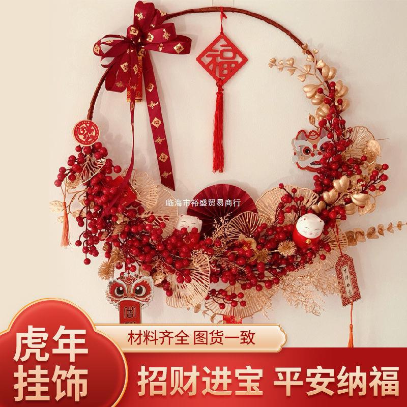 財果2022年新年結婚室装飾年夜食花環門掛花虎年新春家庭用ショーウインドーストラップ