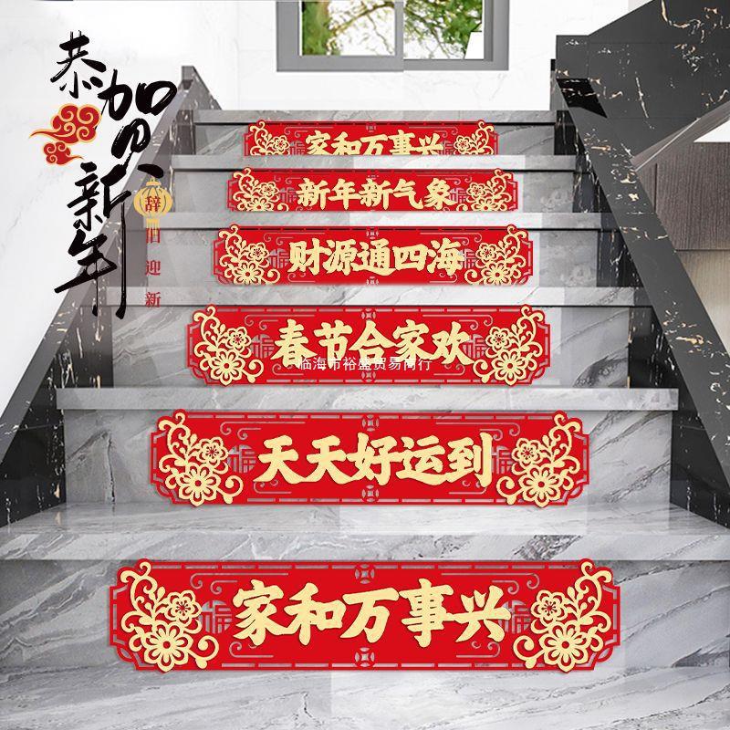 2023年新年装飾品旧正月ウサギ年階段は手すりを貼って花を引いて農村家庭の新春の配置を貼った