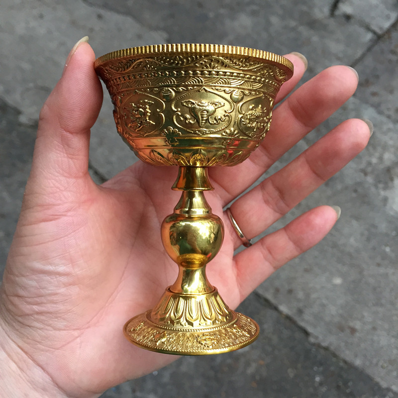 メーカー卸売り純銅保護カップチベット式彫刻八吉祥給水カップ仏カップ法器置物