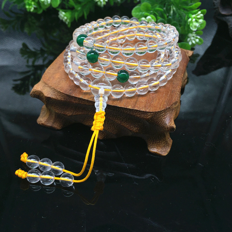 白水晶素珠108個の仏珠数珠ブレスレットと赤仏珠黄水晶金剛サソリ