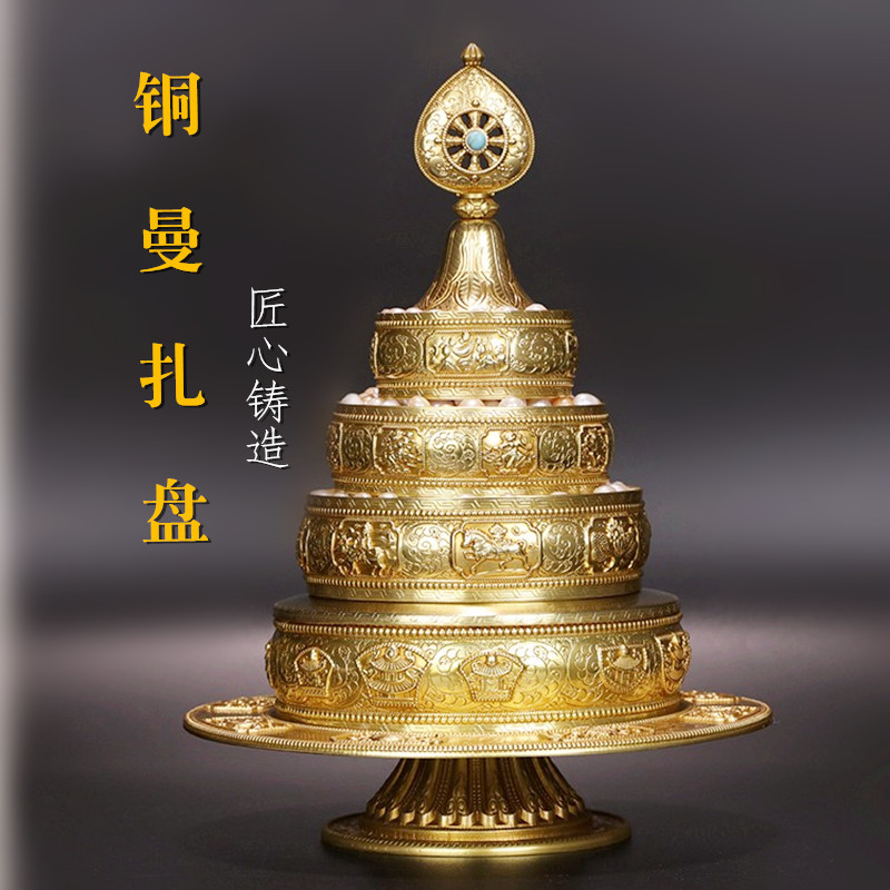 チベット式マンジャ盤銅はネパールの八吉祥彫刻花三十七をまねて曼茶羅修盤を供えて仏を供える。
