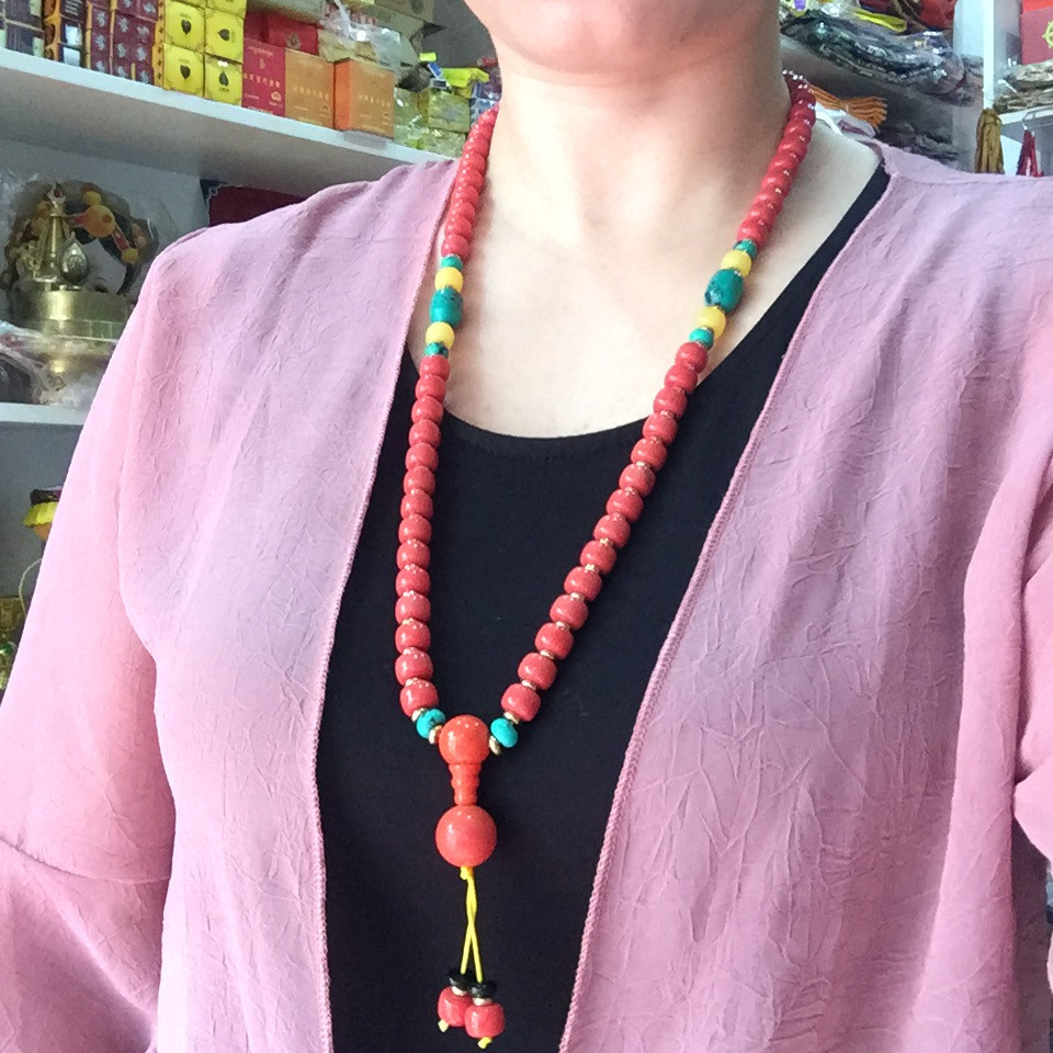 チベット式瑠璃仏珠108個の手串男性赤瑠璃ブレスレット金剛鈴杵カウンター女性セーターチェーン