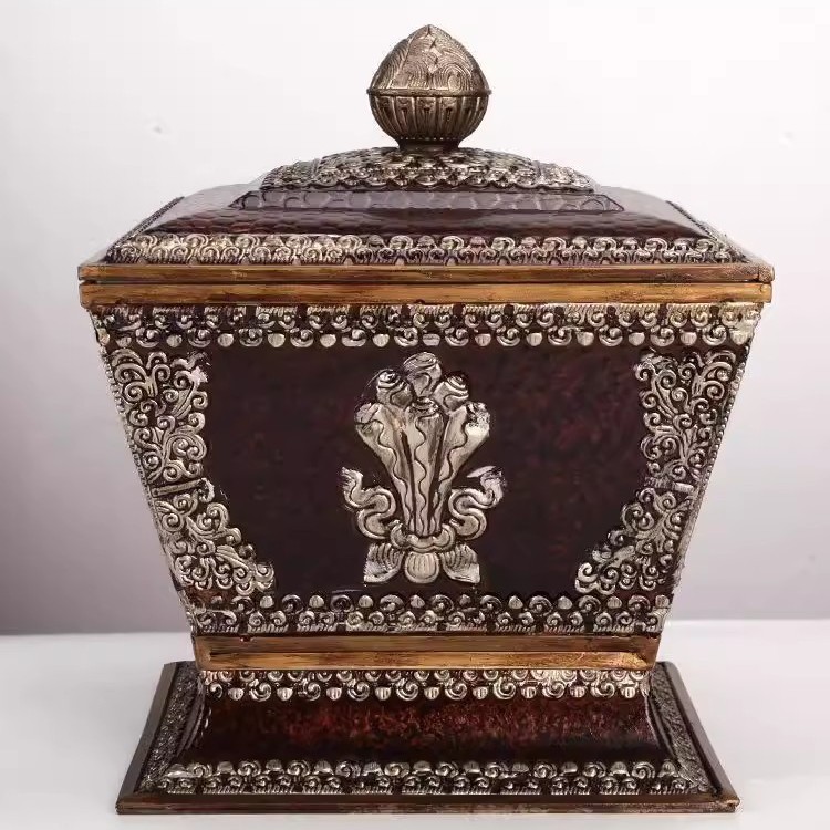 ネパールの工芸チベット式の箱米箱米缶の貯金箱に摩尼宝の家庭用民宿の置物を象眼しました。