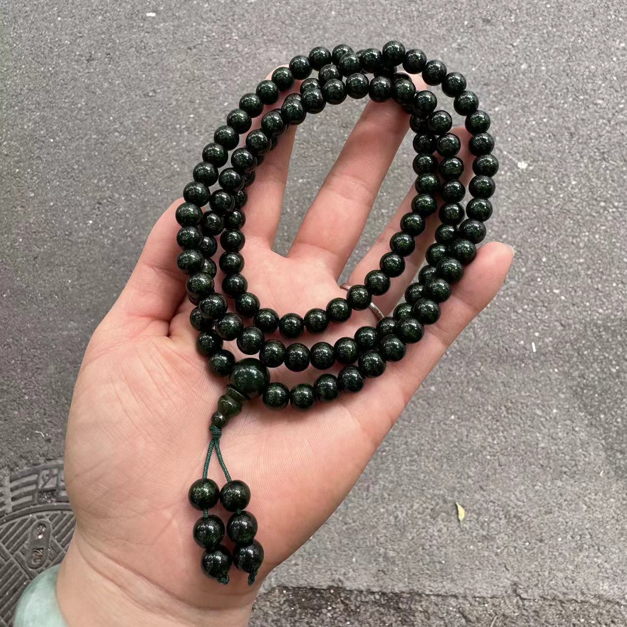 新しい108個の墨緑金沙緑度母瑠璃珠手串ネックレス毛衣チェーン8mm