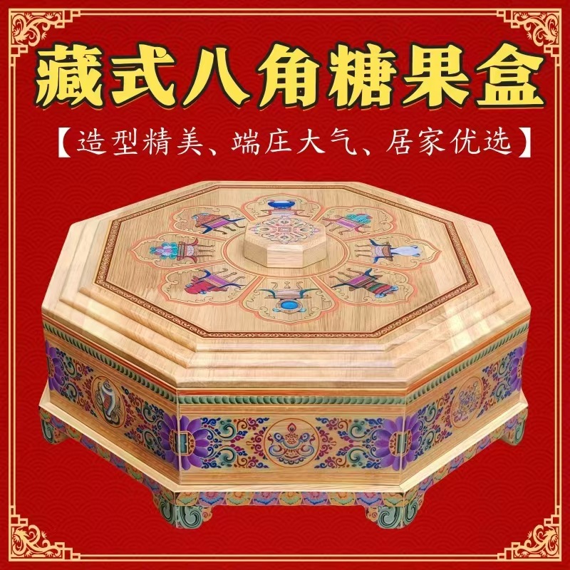 チベット式の蓋付きの果物の皿の箱のオークの八吉祥のお菓子の箱の八角形の蓮の花の精巧な彫刻の紋様は果物の皿を供えます。