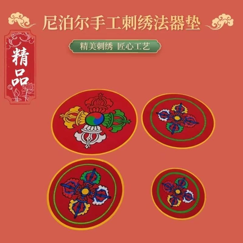 布マット、チベット風装飾品、ネパール手刺繍滑り止め丸仏マット、金剛杵、木魚