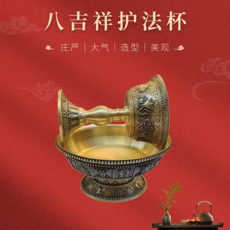 チベット式八吉祥彫刻法杯黄銅保護杯カップ家庭用民族風家庭用置物
