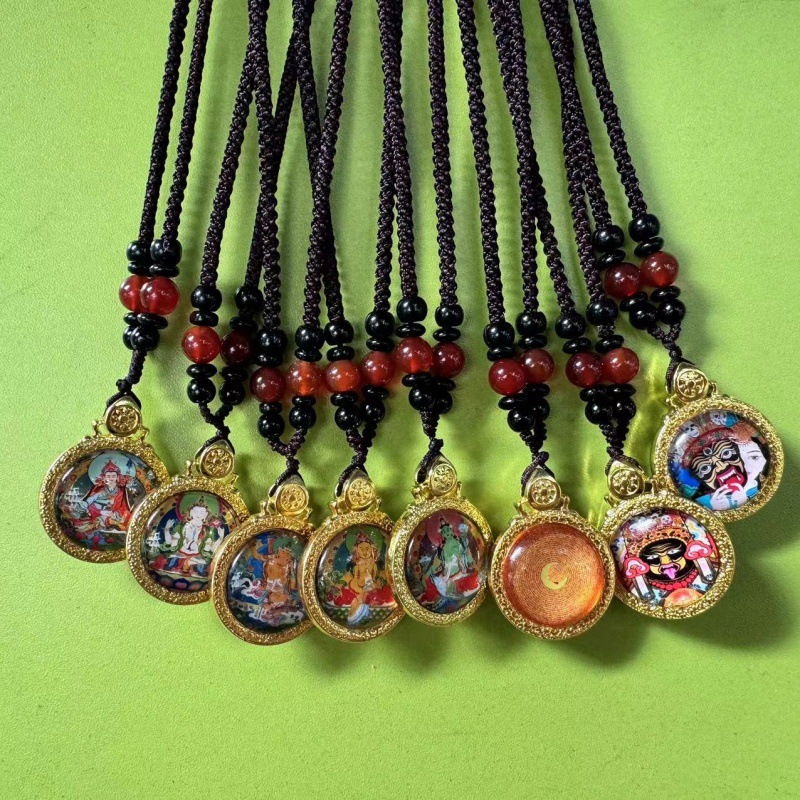 チベット族ネックレス円形民族風合金復古印刷黄財神唐カードペンダント潮流