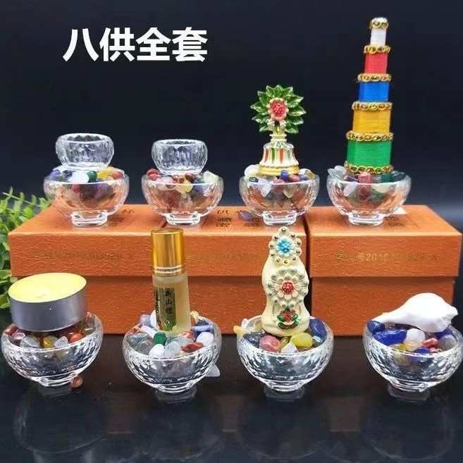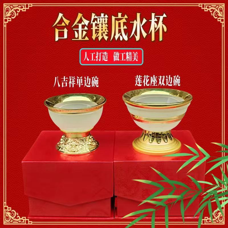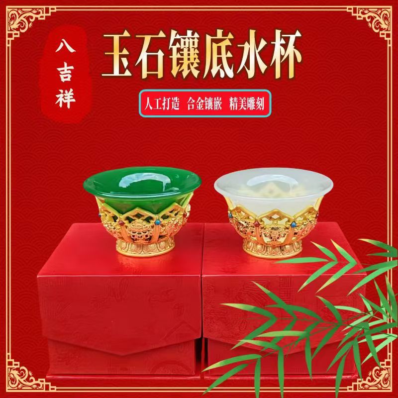 合金八吉祥蓮の花座の金古法は玉の給水碗の家庭用のデスクトップの装飾の置物のコップの八供碗をまねます。