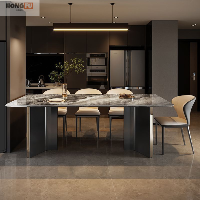 Honfu Jiayue 長方形高級石ダイニングテーブルハイエンドの非常にシンプルな高級石天然大理石インターネット有名人の長方形のダイニングテーブル