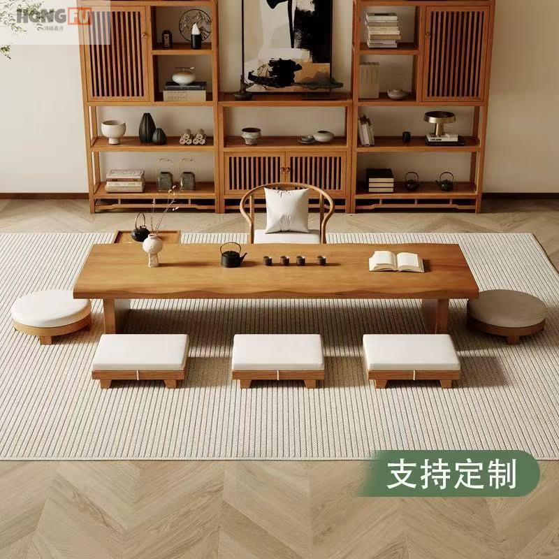 Honfujia 中世のわびさびスタイル無垢材コーヒーテーブルリビングルームホームローテーブル小さな日本のバルコニー畳ティーテーブル