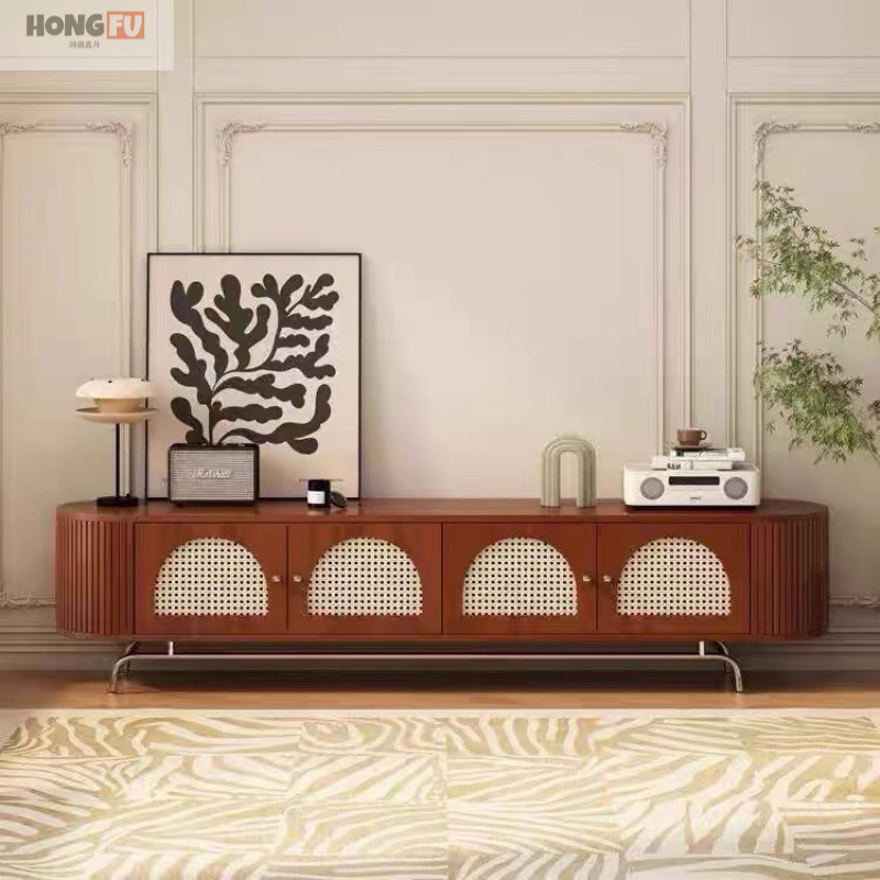 無垢材籐コーヒーテーブルテレビキャビネットレトロ小さなリビングルームフレンチスタイルコンビネーションテレビ収納キャビネットフロアスタンドホーム