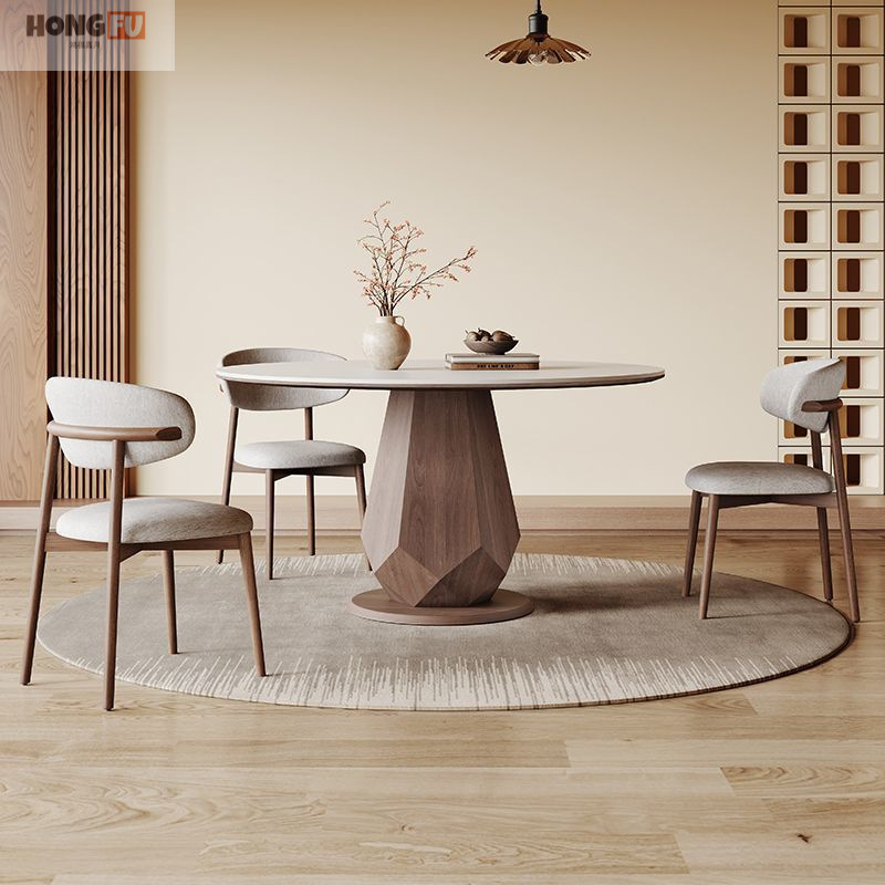 レトロなロックプレートダイニングテーブルターンテーブル家庭用小型ラウンドダイニングテーブルシンプルなアンティーク無垢材のダイニングテーブルと椅子ラウンドテーブルの組み合わせ