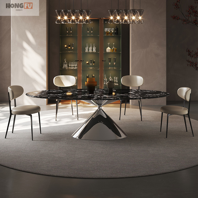 イタリアのミニマリスト楕円形の空飛ぶ円盤大理石テーブルダイニングテーブルハイエンドヴィラライト高級家庭用純白のロックプレート天然高級石