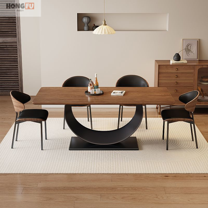 中世スタイルのダイニングテーブル家庭用長方形ダイニングテーブルと椅子小さなアパートシンプルな組み合わせフレンチ無垢材ウォールナットダイニングテーブル