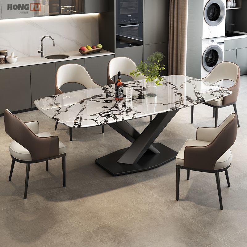 イタリアのライト高級微結晶石ダイニングテーブル小さなクロスフットダイニングテーブル長方形ホームレストランダイニングテーブルと椅子の組み合わせ